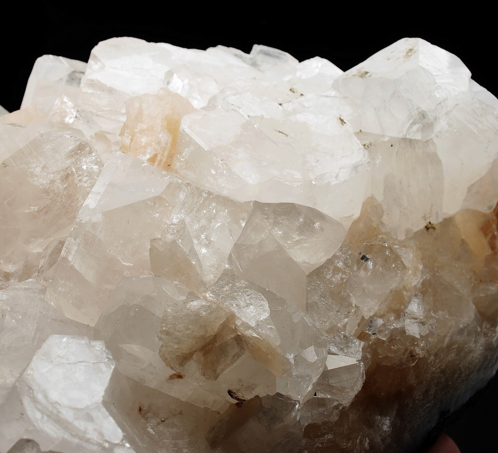 Błyszczący zrost kryształów apofyllitu.