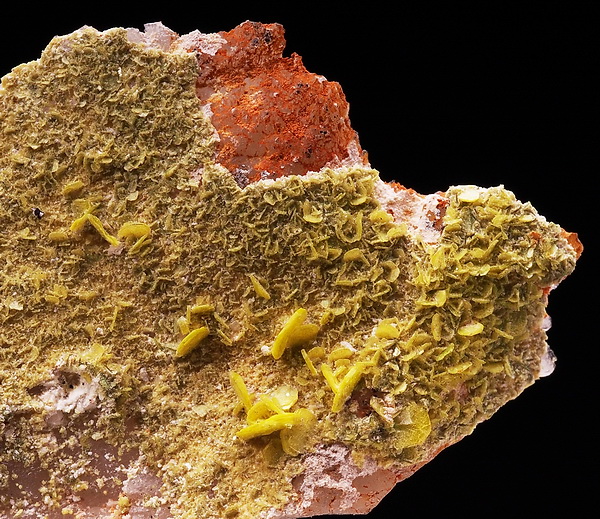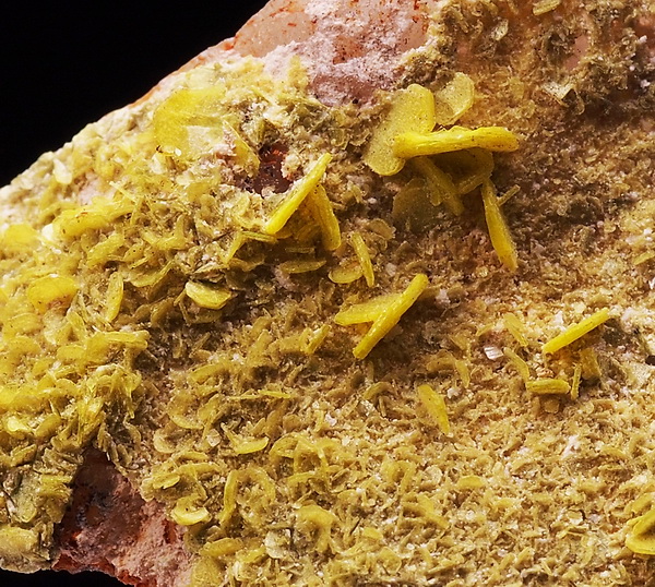 Kryształy żółtego autunitu na matrixie.