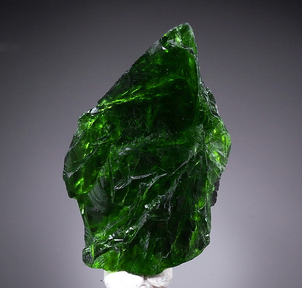 Okaz ciekawego chromodiopsydu (diopsyd chromowy) - piękna barwa przy podświetleniu.
