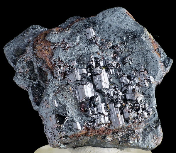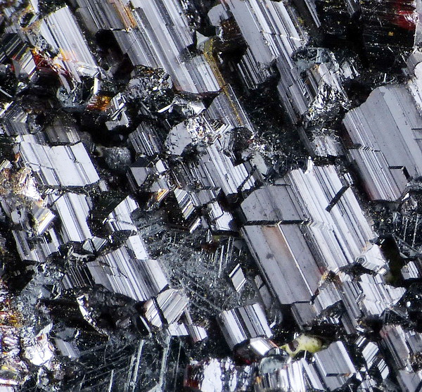 Duży kryształ hematytu - pseudomorfoza po ilmenicie z narastającym rutylem - bardzo błyszczące równoległe zrosty epitaksjalne.