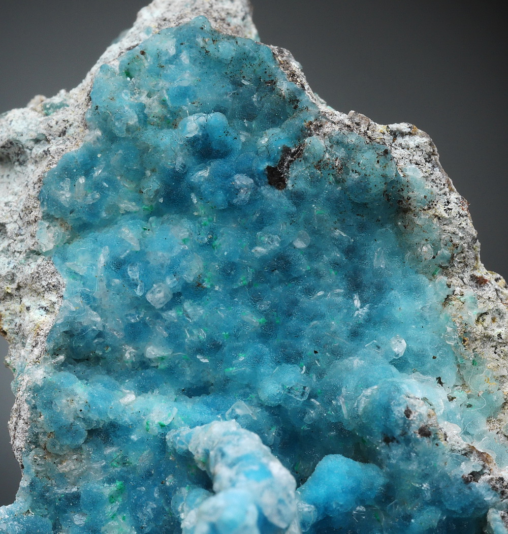 Skupienia naciekowych / kolomorficznych skupień hemimorfitu.