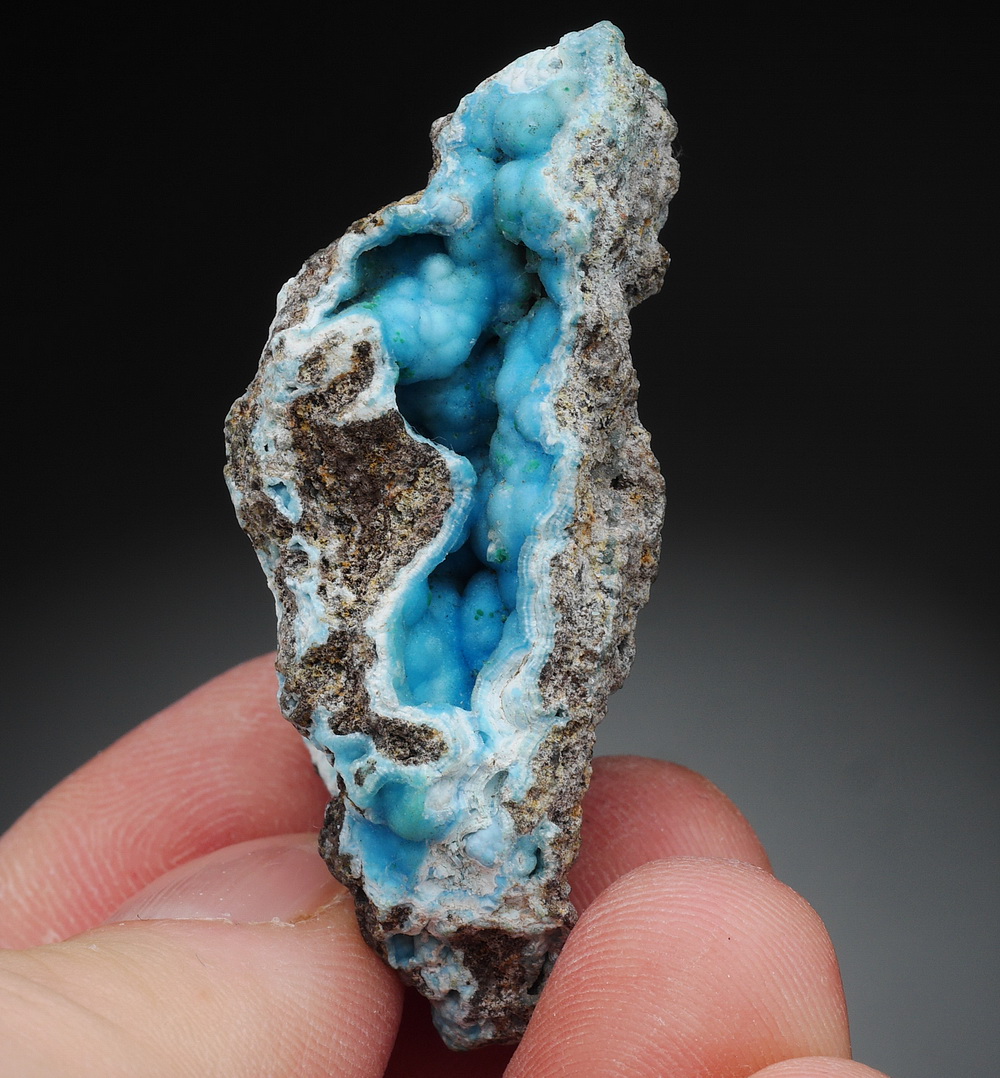 Skupienia naciekowych / kolomorficznych skupień hemimorfitu.