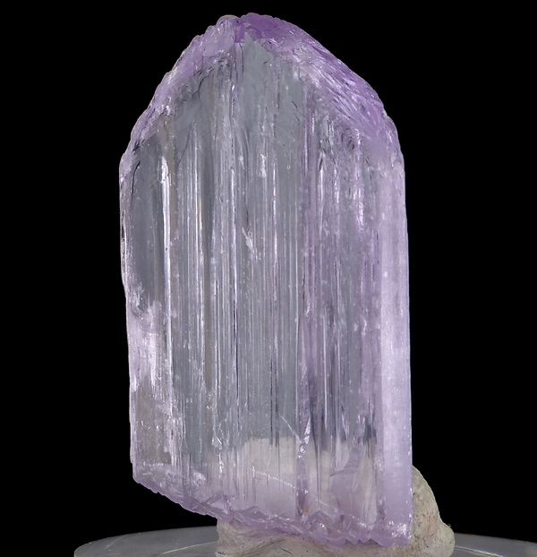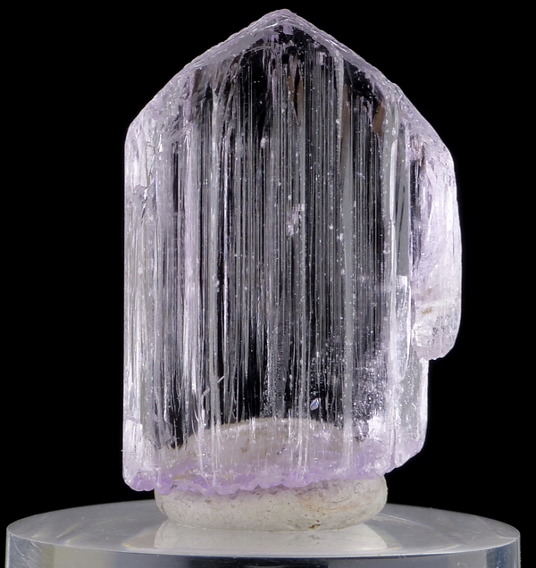 Kunzyt (kuncyt) - ładny, dobrze wykształcony kryształ różowej odmiany spodumenu. Kryształ "pływak" - podwójnie zakończony. Duża przezroczystość.
