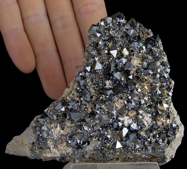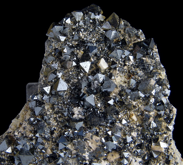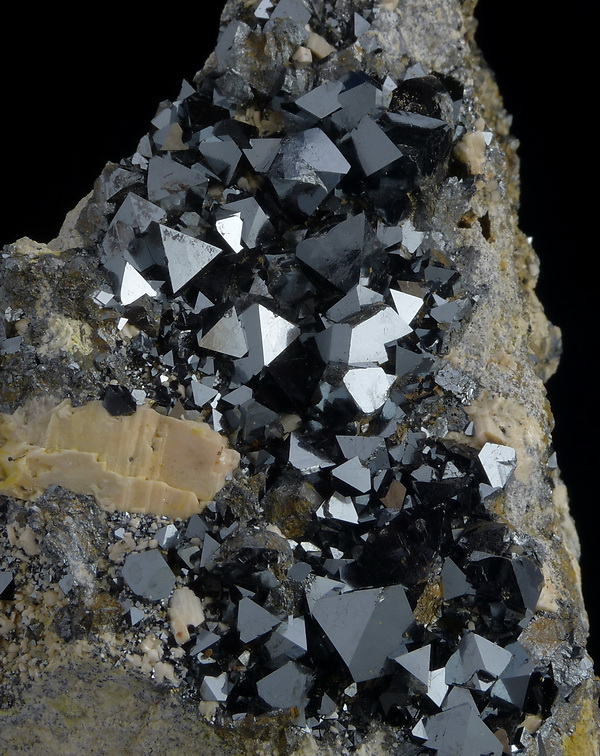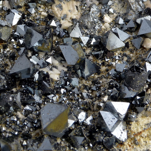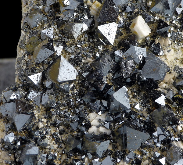 Idealnie wykształcone kryształy magnetytu o silnym połysku osadzone na matrixie.