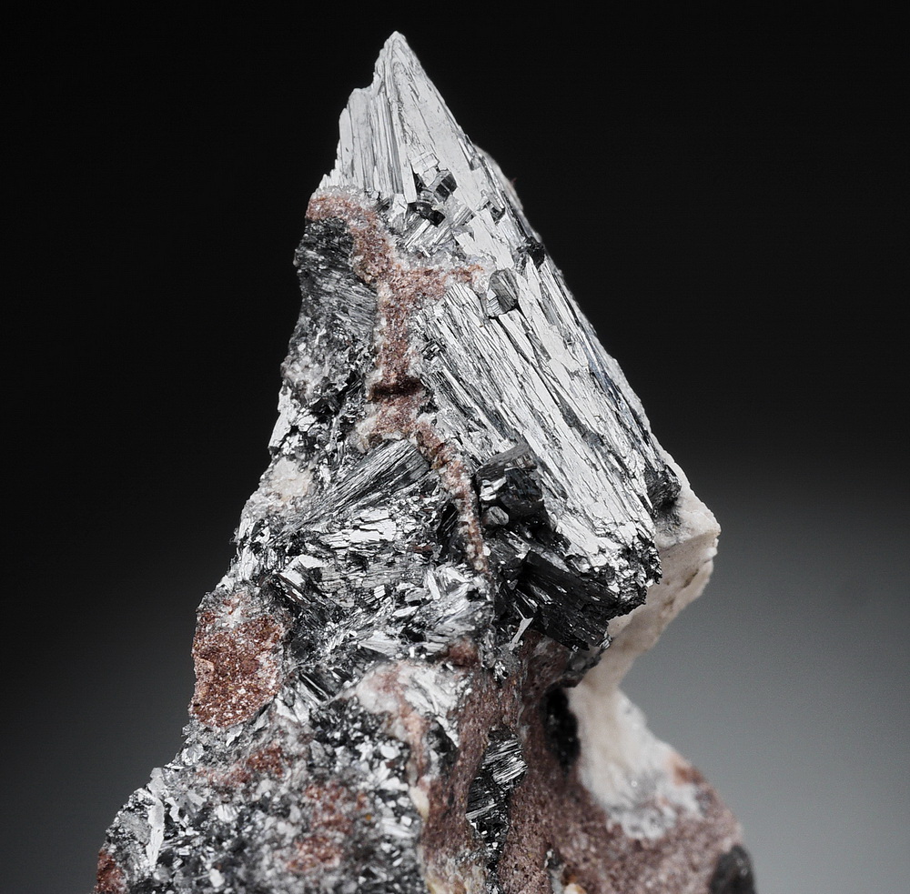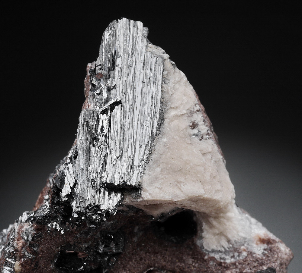 Rewelacyjne, promieniste skupienia niezwykle błyszczących kryształów piroluzytu z barytem w matrixie.