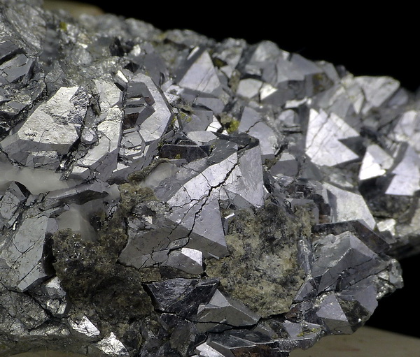 Kryształy rzadkiego skutterudytu o silnym, metalicznym połysku.
