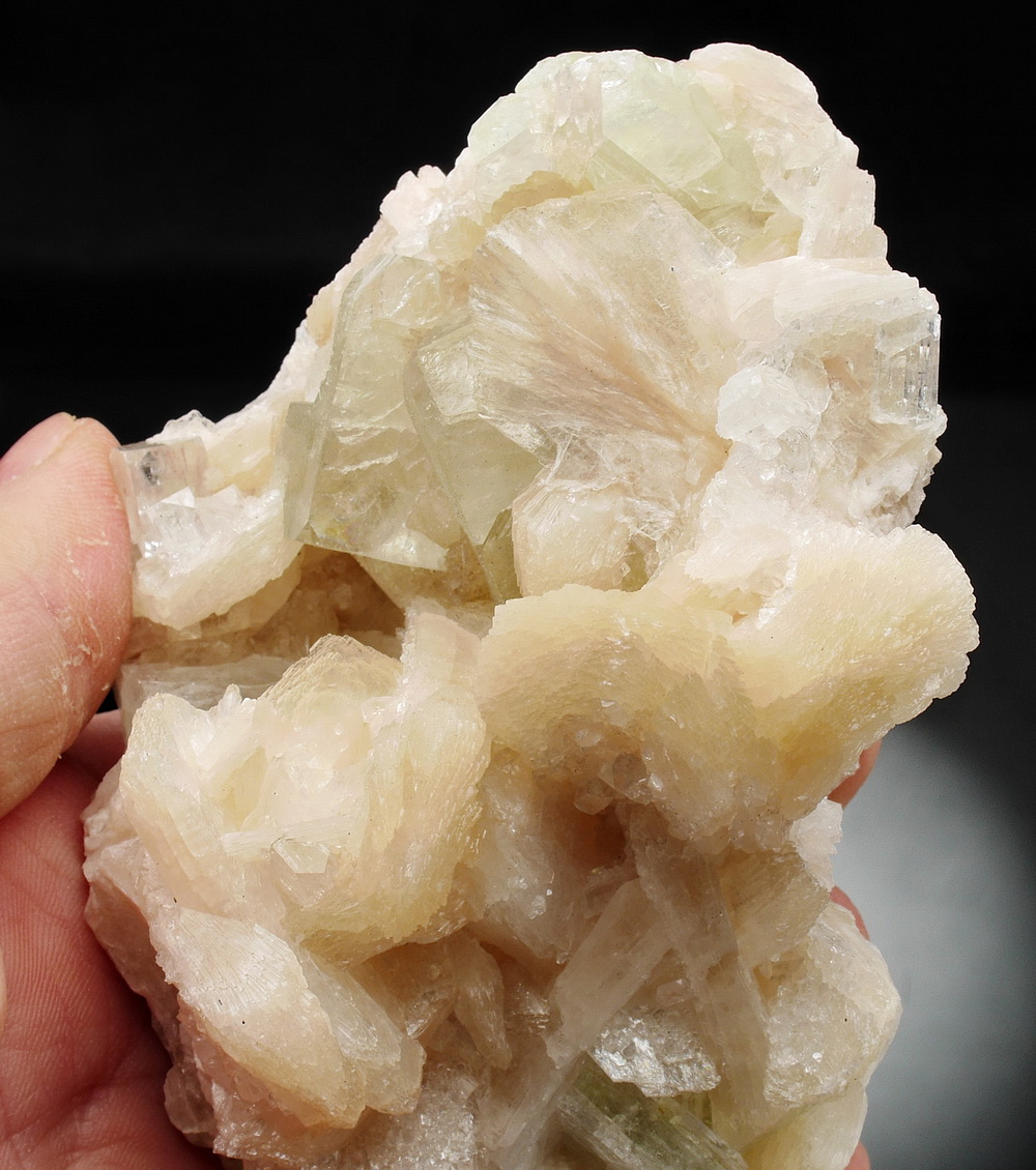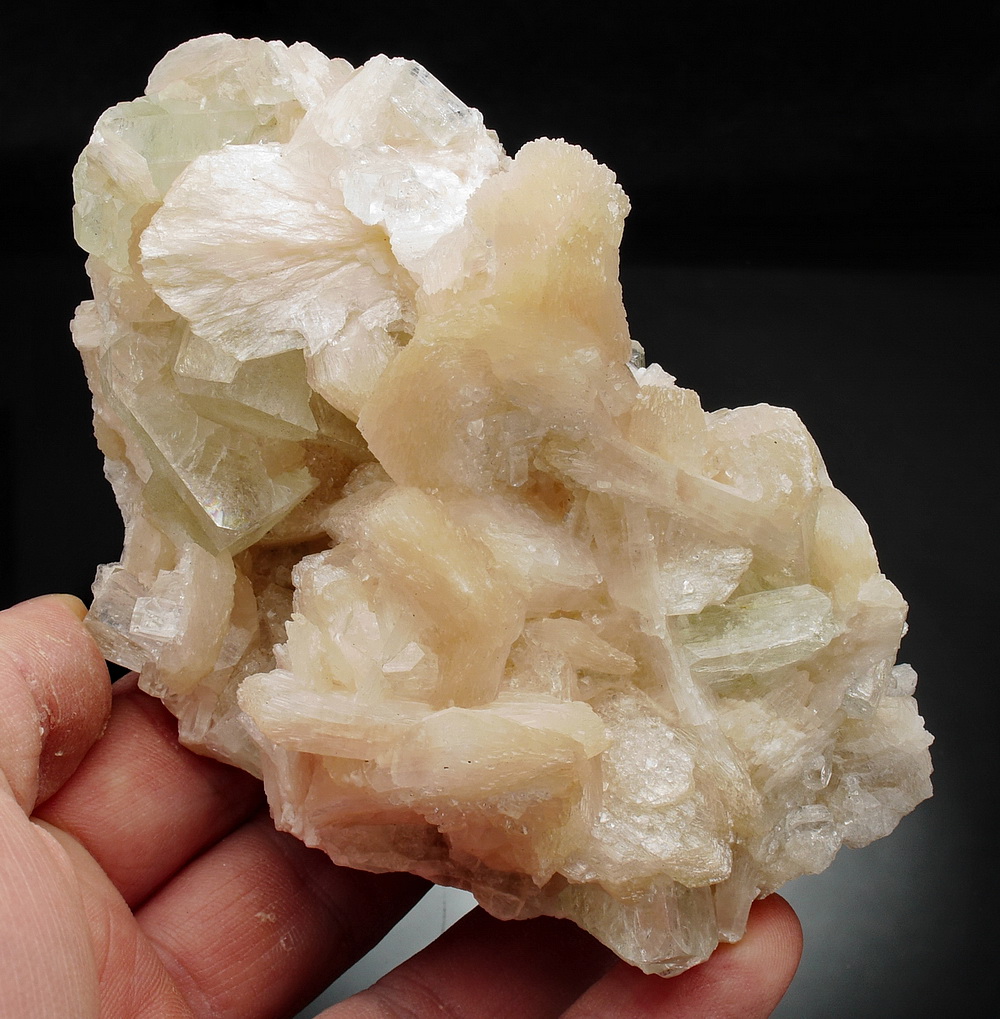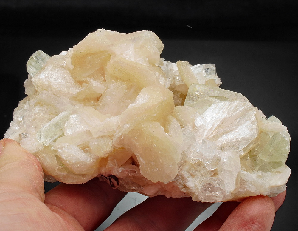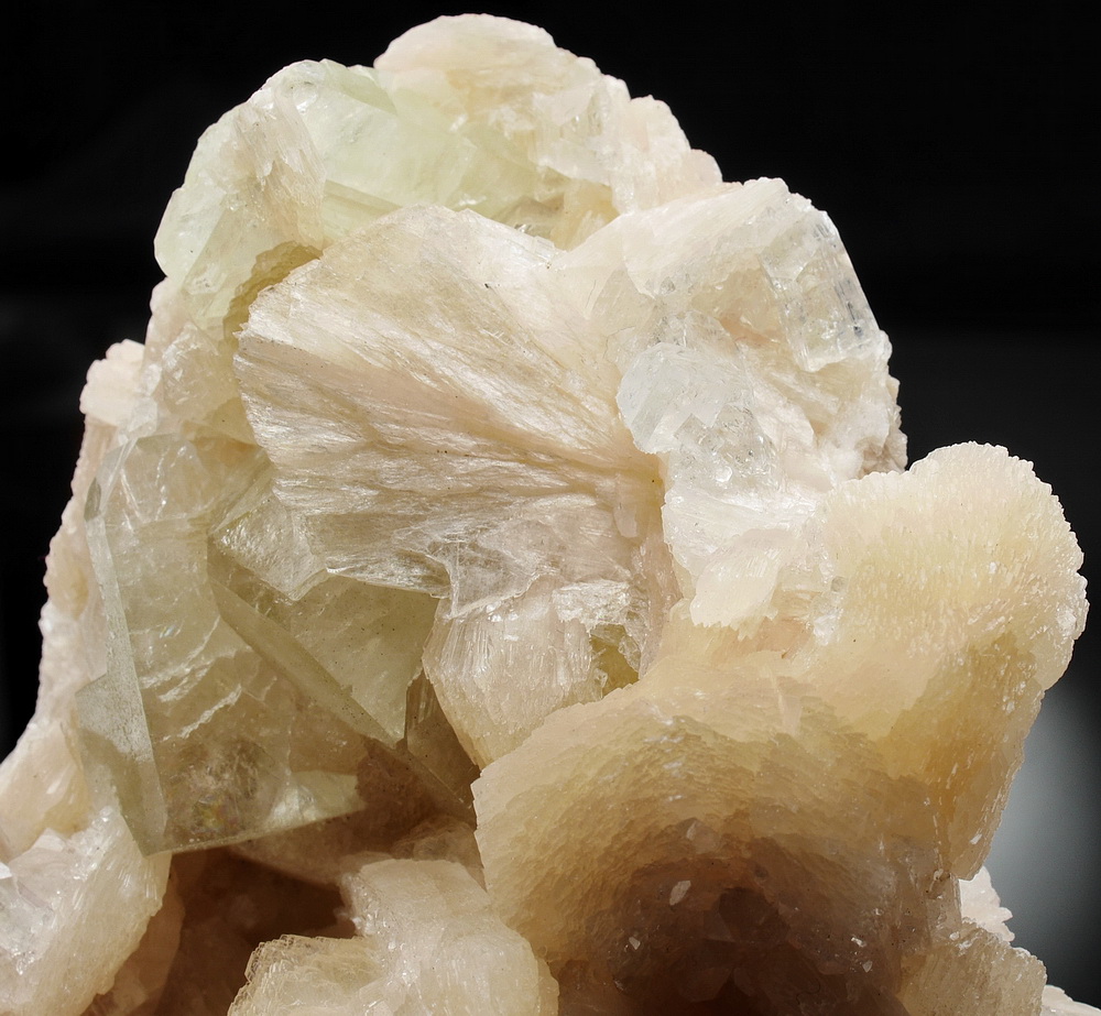 Błyszczący zrost kryształów stilbitu i apofyllitu.