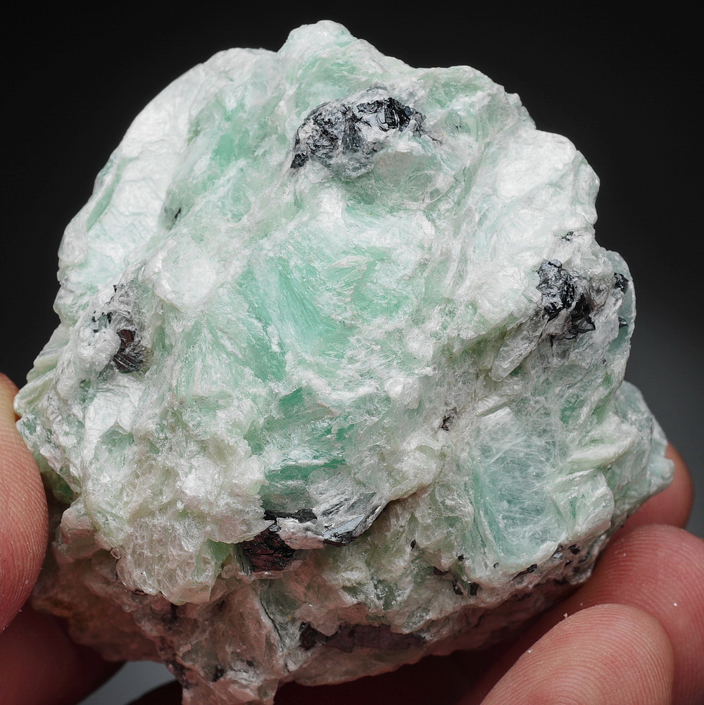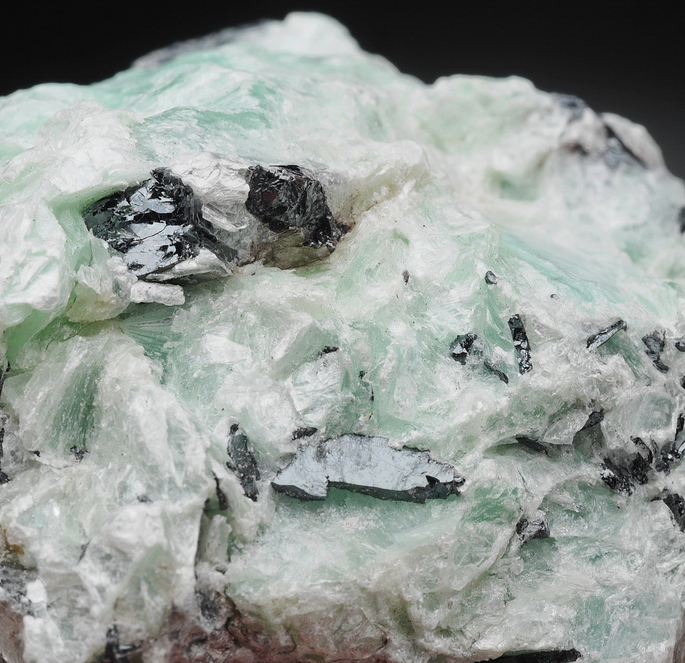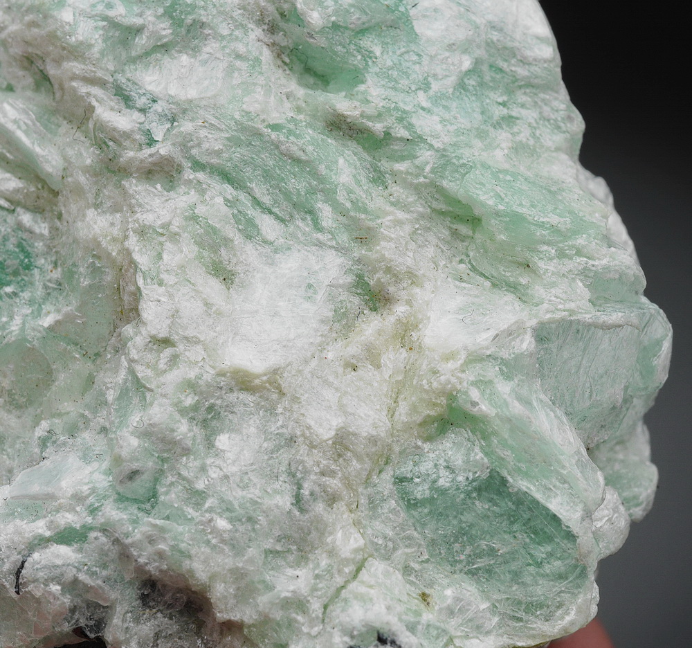 Blaszkowe, błyszczące skupienia talku z rzadkiej lokalizacji. Talk to najmiększy minerał na świecie - wzorcowy o twardości 1 w skali Mohsa