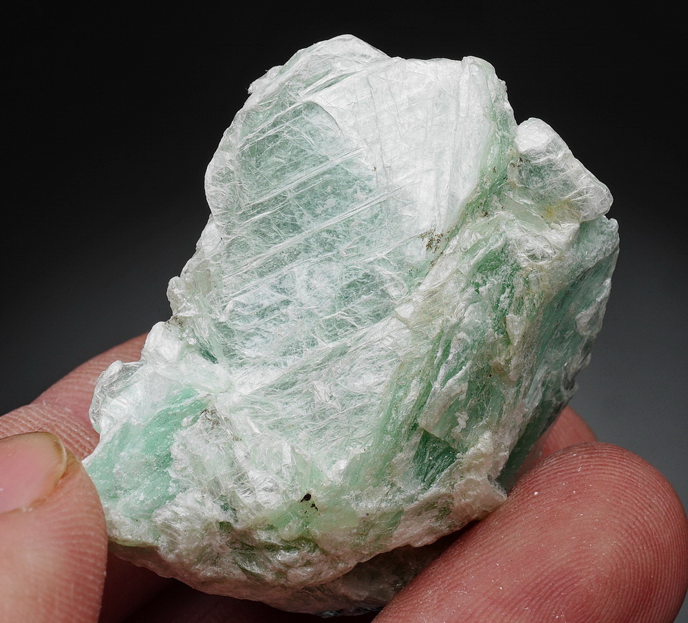 Blaszkowe, błyszczące skupienia talku z rzadkiej lokalizacji. Talk to najmiększy minerał na świecie - wzorcowy o twardości 1 w skali Mohsa