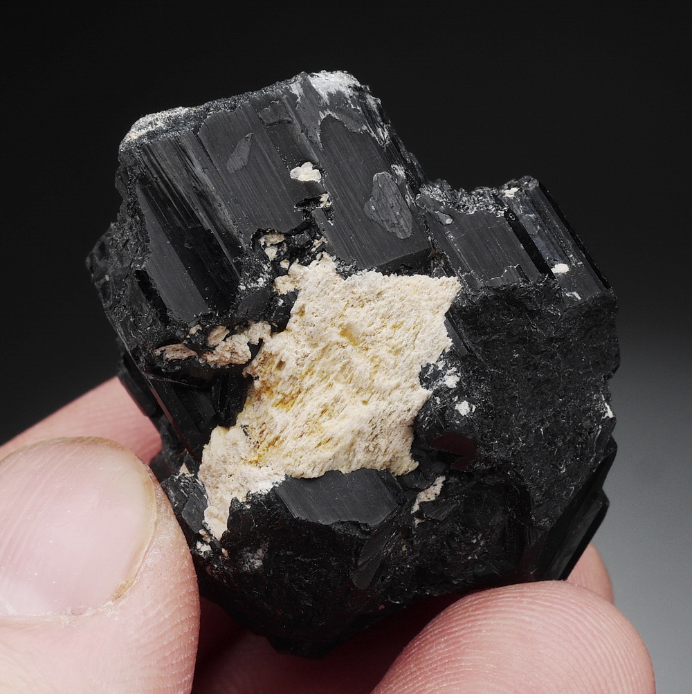 Bardzo błyszczący i dobrze wykształcony, duży kryształ czarnego turmalinu (szerl) .