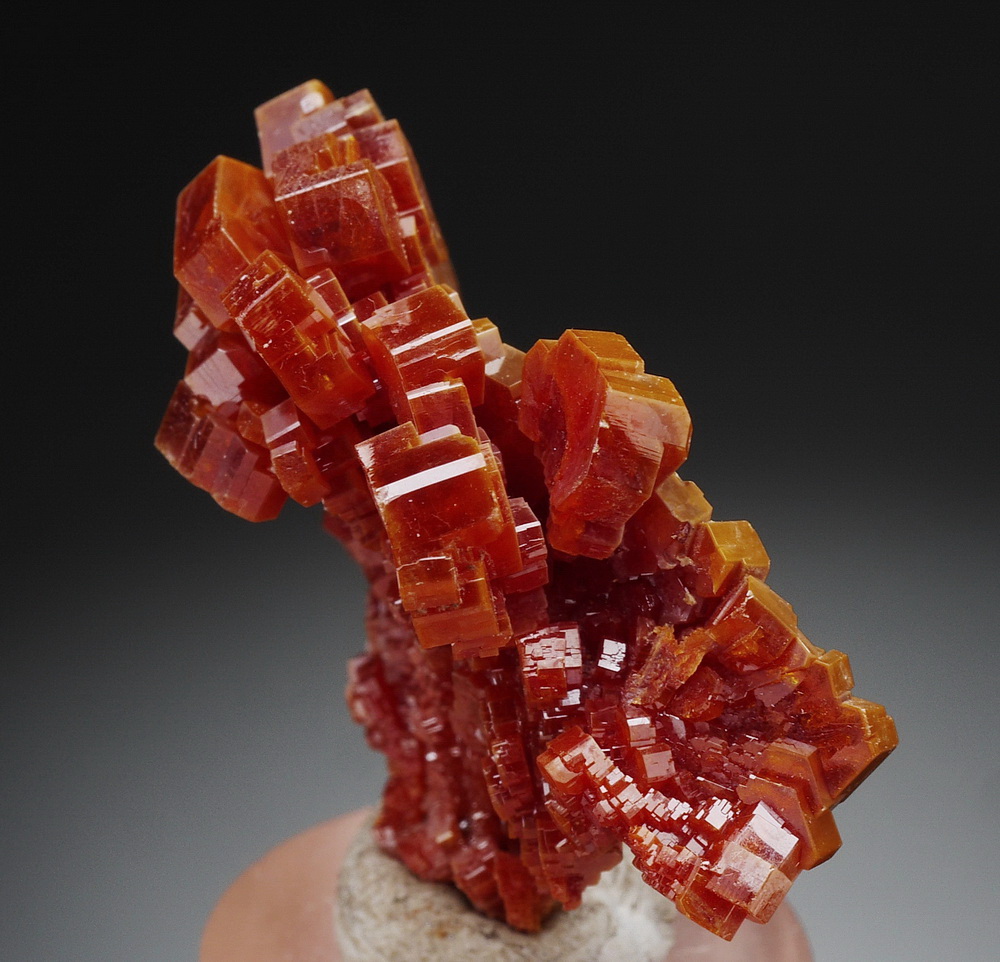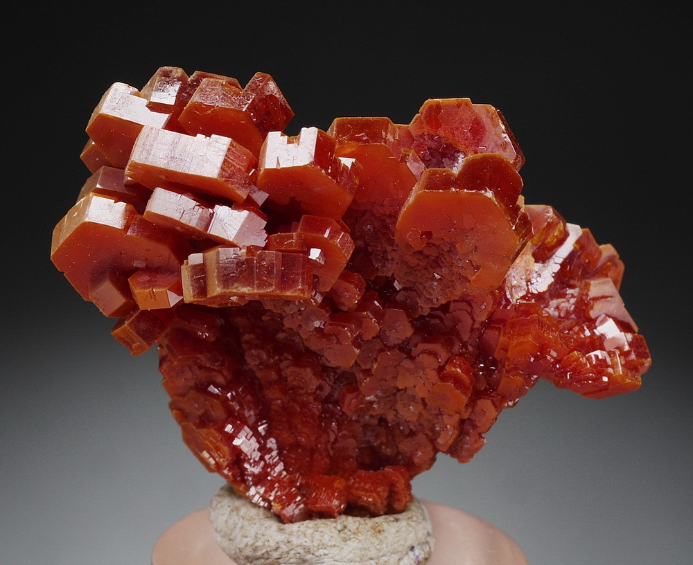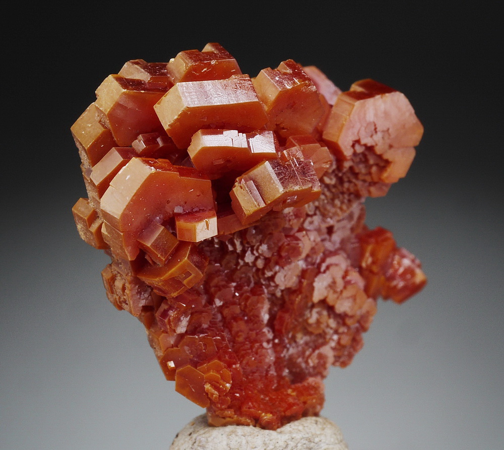 Dobrze wykształcone i błyszczące kryształy wanadynitu.